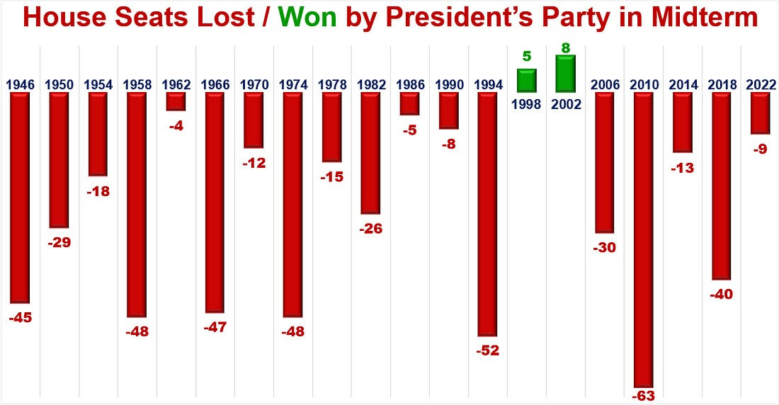 Another one of Bruce’s charts shows how often the President’s wins House seats during midterms: